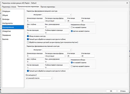 - Задание черновой и чистовой фрезерной обработки контура детали.