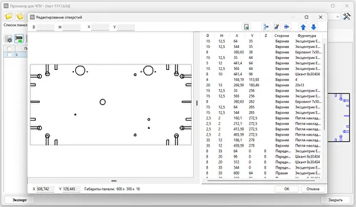 В модуль встроен постпроцессор перевода сформированных карт раскроя в управляющую программу для пильного центра, что позволяет использовать модуль БАЗИС-Раскрой вместо оптимизатора пильного центра.