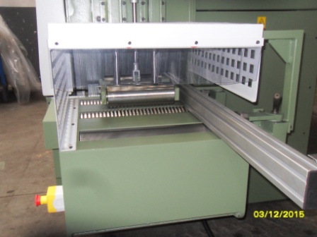 - На входе станка для точного позиционирования длинного и тяжёлого лафета предусмотрен независимый, верхний прижимной валик и 3 нижних подающих приводных валика с пневмоприжимом