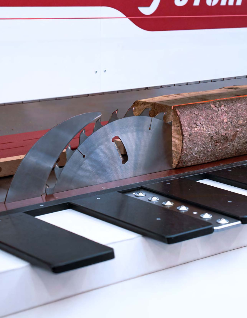 Пилы FLS могут резать призмы, балки, доски, крупногабаритные материалы с криволинейным или прямолинейным краем. Исходный материал можно строгать, обрезать, форматировать, резать под углом, делать фаски, канавки или использовать для получения срезов и ламелей. Станок идеально подходит для производителей паркета, массивной мебели или лестниц. Пилу также можно использовать для резки недревесных материалов, таких как панели PUR/PIR, материалы из искусственных веществ, сэндвич-панели, алюминий или цементно-стружечные плиты.