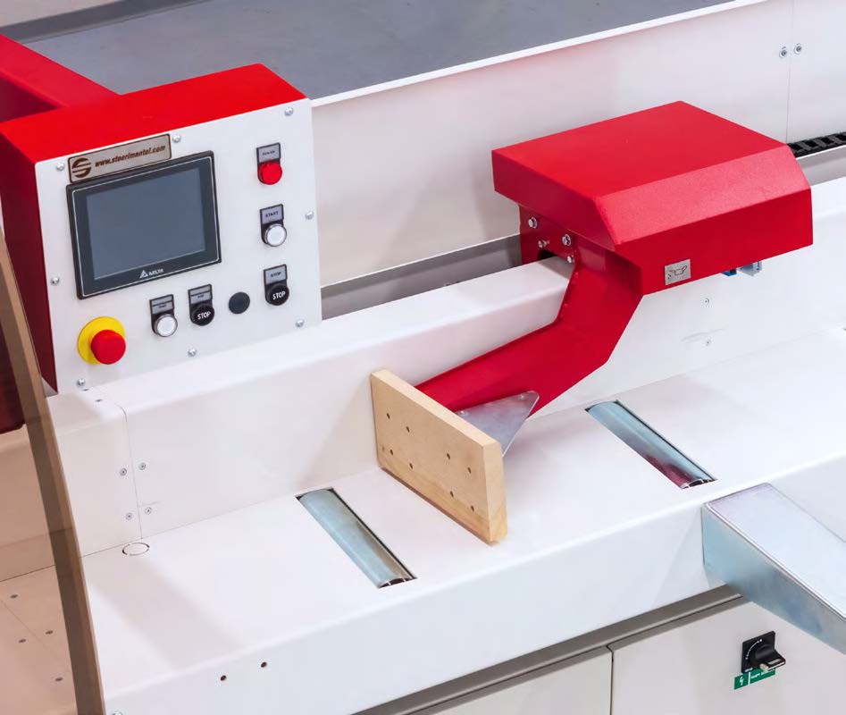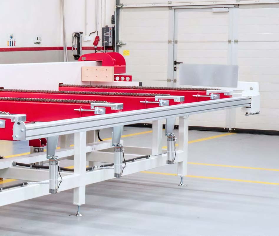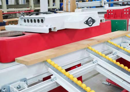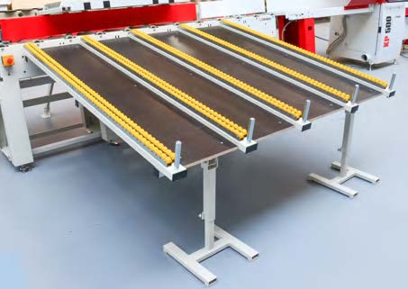 Это модель без наклона и с роликами. Она позволяет оператору удобно сортировать и подготавливать материал, который затем подается в зону загрузки. Это исключает простои во время работы пилы и трудоемкую обработку материала. Стол оснащен защитным клапаном на конце, предотвращающим непреднамеренный выброс материала за пределы досягаемости оператора.