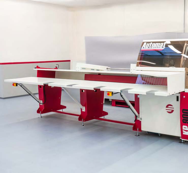 Обычно он имеет длину два метра и частично закрыт в зоне резки. Оператор может безопасно убирать отрезанный материал, не подвергая себя риску порезаться, получить травму от режущего диска или стружки.