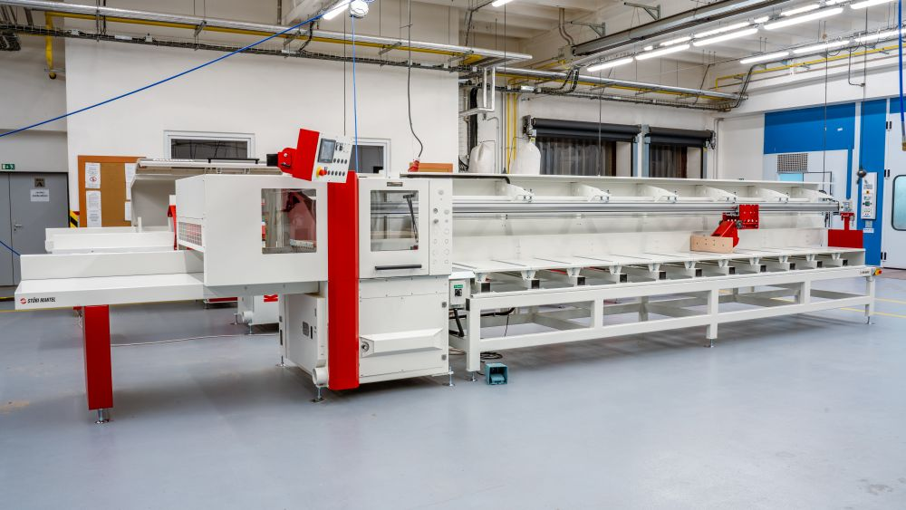 Автоматическая поперечная пила UKS 850 предназначена для распиловки бревен, строительной древесины или досок с резкими краями, для которых требуется большой шаблон