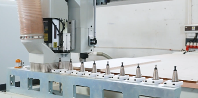 Стол оснащен 7 крупными зонами вакуумного прижима с равномерным распределением. Прижимная поверхность утолщена, а воздуховоды комбинированные (гибкие + жесткие) для предотвращения утечек