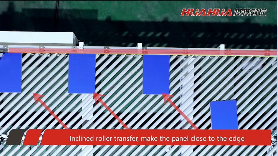 Наклонный роликовый транспортер позволяет приблизить панель к краю и выровнять ее по бокам