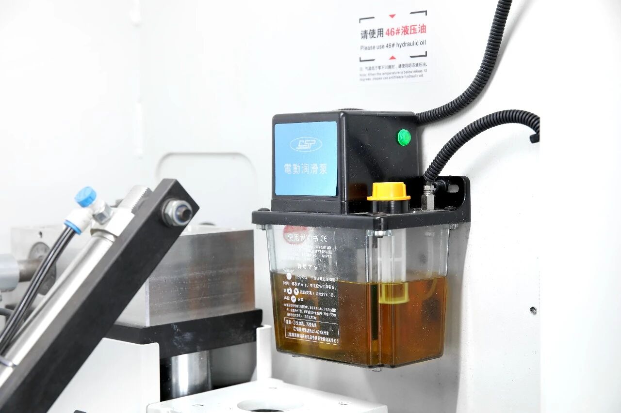 Пневматическая система автоматической подачи масла; все салазки смазываются через односторонние регулируемые распределители, что гарантирует равномерную смазку каждого узла при каждом цикле.