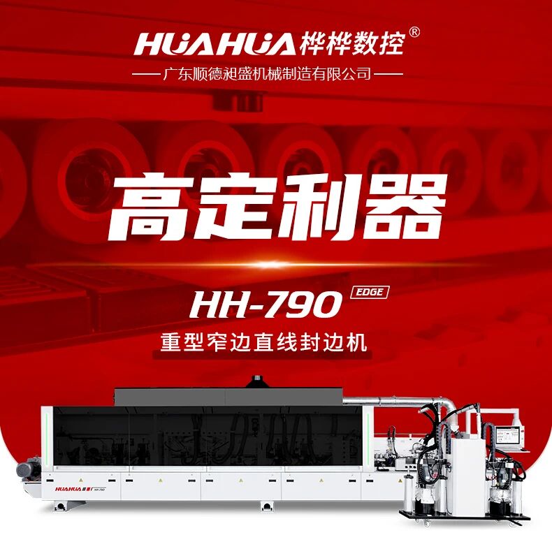 HH‑790 — тяжелый прямолинейный кромкооблицовочный станок для высококачественного производства, включая кромление узких деталей по 4-м сторонам минимальным размером 40х200 мм, в котором собраны ключевые технологии и реализованы новые функции для повышения эффективности, стабильности и скорости работы.