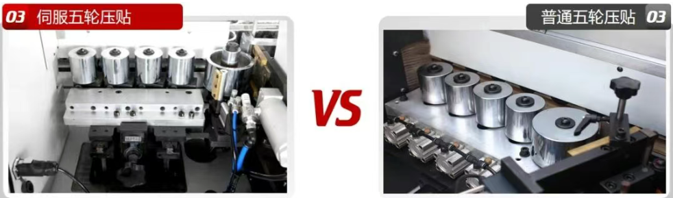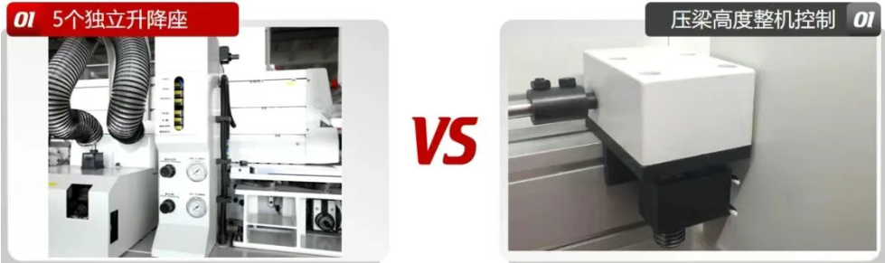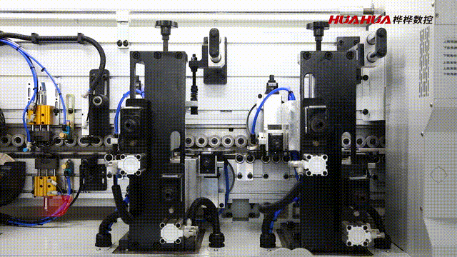 Пять независимых подъемных узлов: прижимной, торцовочный, копировальный, скребковый и полировальный блоки имеют отдельный подъем, что предотвращает вибрацию и смещение панелей и обеспечивает более плотное, стабильное и точное кромкооблицовывание.