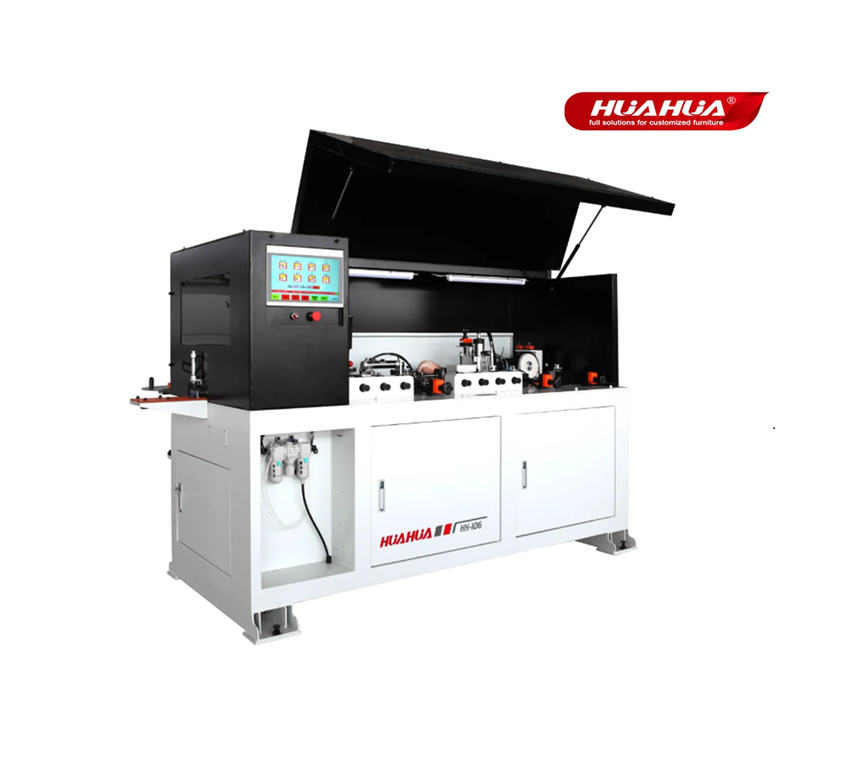 • Повышенная эффективность: совмещение операций предварительного фрезерования, нанесения клея, прокатки кромки, торцевой обрезки, верхней/нижней обрезки, скребка, очистки клея и полировки в едином проходе.