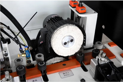 • Полировочный блок с возможностью изменения угла установки до 15 градусов для оптимизации качества полировки кромочного материала.