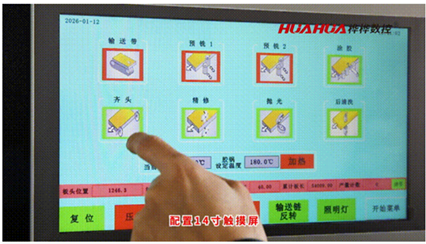 • Быстрый доступ к основным настройкам (скорость подачи, температуры клея, режимы узлов) через сенсорную панель.