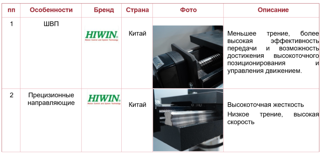 Используются высокоточные линейные направляющие, которые отличаются высокой жесткостью и точностью.