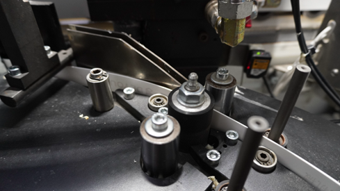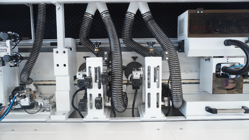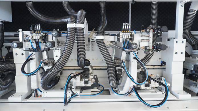 Пять прижимных роликов используются для обеспечения плотного прилегания кромкооблицовочной ленты к краю плиты. Каждое прижимной ролик приводится в действие независимым серводвигателем.