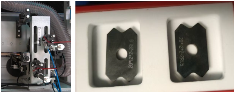 Стандартная комплектация: Кромочный скребок R2 подходит для окантовки кромок толщиной 0,4-2 мм. Лезвие скребка (R-образное лезвие) эффективно удаляет линии от фрезы на кромке R-образной дуги.