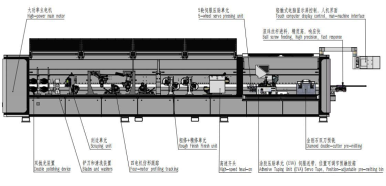 Четыре электродвигателя работают сообща, обеспечивая привод и эффективную систему управления, позволяя режущей головке быстро обрабатывать кромку. Скорость обработки может быть увеличена на 30-50%. Благодаря точному управлению двигателем и обратной связи с датчиками режущая головка может обрабатывать торцы с чрезвычайно высокой точностью, достигая точности размеров ± 0,1 мм