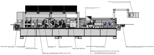 - Безупречное качество кромки – система точного нанесения клея и пресс группа с сервоприжимом обеспечивает минимальную линию клея и идеальную подрезку.
