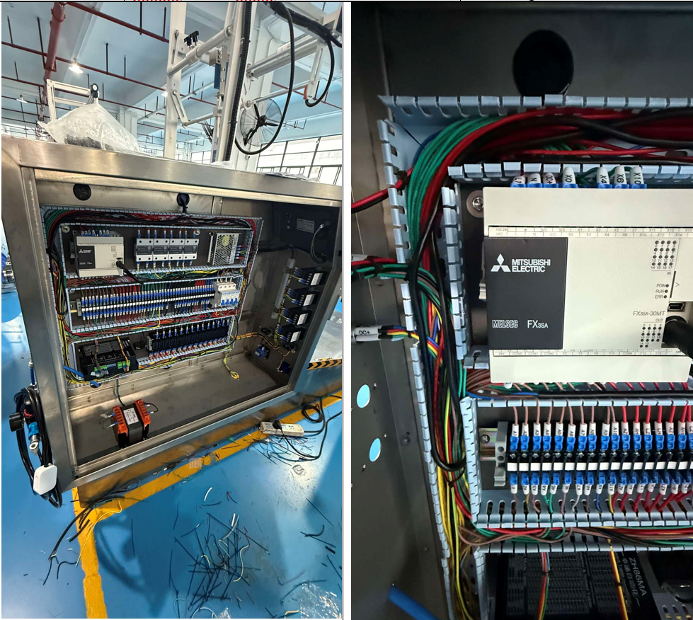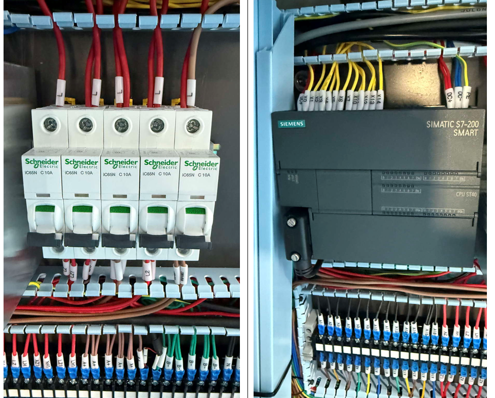 Электрический шкаф линии фасовки собран на основе компонентов ведущих мировых производителей — Siemens, Schneider Electric, Mitsubishi и Omron — что обеспечивает: