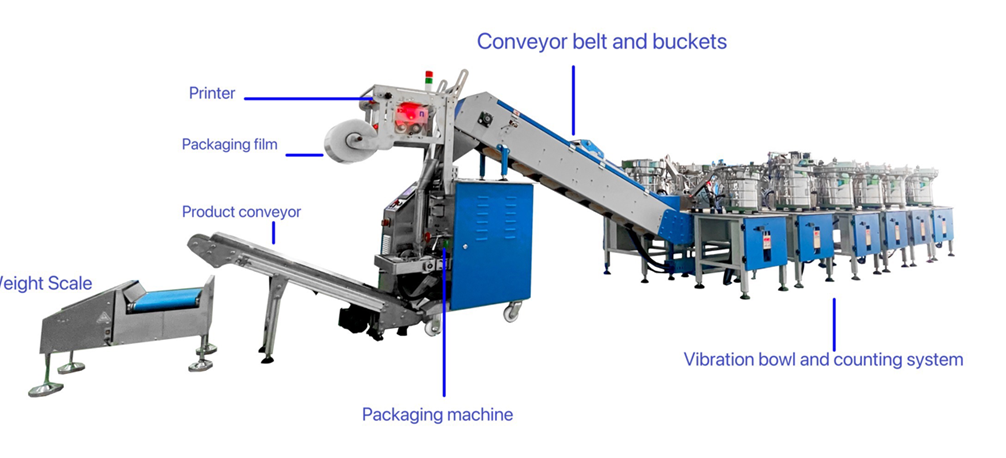 - Гибкость производства: Каждый счетный бункер может быть включен или отключен индивидуально в зависимости от текущих производственных требований. Все потенциально опасные узлы оснащены защитными устройствами, соответствующими стандартам промышленной безопасности.