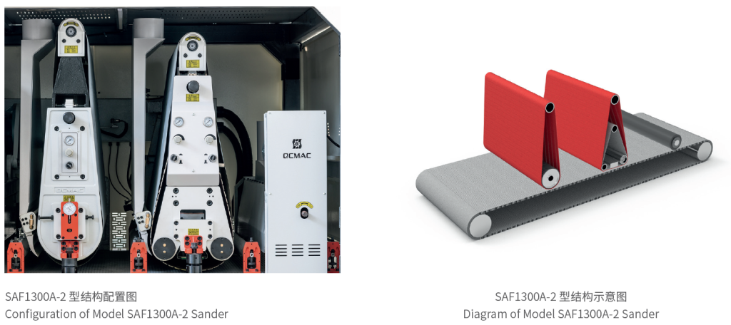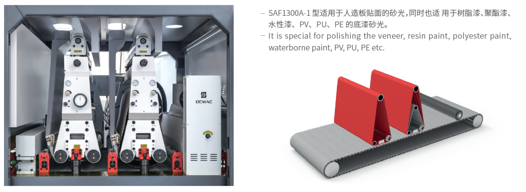 SAF1300B: Специально предназначен для шлифования шпона, ПВХ, ПУ, ПЭ, меламина, грунтовки и краски, включая шлифование краев с точностью ±0,1мм.